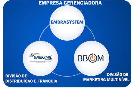 As empresas Unepxmil (rede de franquias), Eaglesat (indústria de equipamentos para a saúde), Ecadil (indústria química e farmacêutica), Extrato Flora (indústria de cosméticos), Life’s (indústria de energéticos e suplementos alimentares), Soggiorno Caffé (indústria de café premium) e a divisão BBOM Telecom, fazem parte do Grupo Embrasystem, com produtos e serviços à disposição para o canal BBOM de distribuição e divulgação.